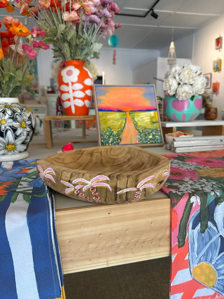 Hand painted wooden fruit bowl. Extra large
