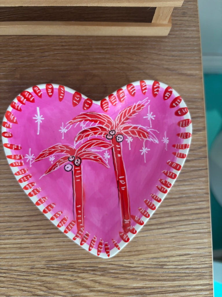 Serve up some love with our Palm Tree Heart Bowl! Made from hand painted ceramic, this bowl will add a touch of whimsy to any table setting. Perfect for serving snacks or as a decorative piece. (Bonus: Palm trees not included!)